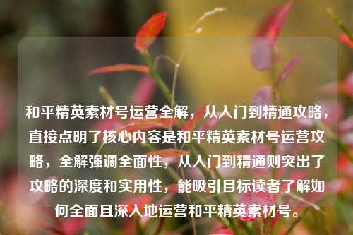 在和平精英这款热门游戏的广袤天地里,素材号正逐渐成为一个独特且具有潜力的领域,和平精英素材号究竟该怎么运营呢?