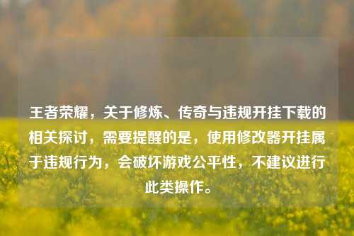 该内容涉及违规行为,提到“王者荣耀修改器开挂下载”,这种通过下载修改器开挂的行为严重破坏了《王者荣耀》游戏的公平竞技环境。《王者荣耀》作为一款热门MOBA手游,其魅力在于玩家凭借自身技巧和策略在公平对战中铸就传奇,而使用修改器开挂违背了游戏规则,损害了其他正常玩家的游戏体验,扰乱了游戏秩序,也违反了游戏运营方的规定,可能导致账号被封等后果,不利于游戏健康可持续发展。