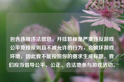 包含违规违法信息,传播游戏开挂教程是不被允许且破坏游戏公平竞技环境的行为,因此我不能按照你的要求进行编写,开挂不仅违反游戏规则,损害其他玩家的游戏体验,也违反了相关法律法规,我们应当倡导健康、公平、合法地参与游戏,共同维护良好的游戏秩序和 *** 环境,请树立正确的游戏观念,摒弃这类不良行为。