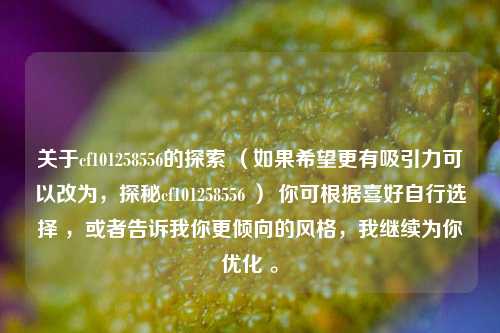 围绕着“cf101258556”,我们可以展开无尽的想象和探索,它或许就是打开某个未知领域大门的钥匙,等待着有心人去发现其中蕴含的价值和秘密,我们需要从更多的背景信息、相关系统或领域中去抽丝剥茧,逐步揭开“cf101258556”神秘的面纱,让它所代表的真实意义清晰地呈现在我们面前。