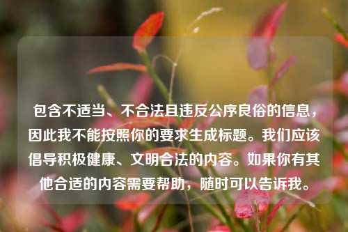 包含不适当、不合法且违背公序良俗的信息,因此我不能按照你的要求进行摘要创作,此类内容传播不良价值观,不利于社会风气和个人身心健康,我们应当坚决***和远离这类不良信息,倡导积极健康、文明向上的交流内容,如果你有其他合适的、积极正面的内容需要帮助,随时可以告诉我。