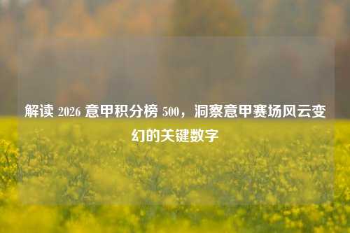聚焦意甲积分榜500这一关键数字,它成为解读意甲赛场风云变幻的重要指标,2026意甲积分榜500背后,蕴含着各球队在漫长赛季中的激烈角逐与起伏兴衰,这一数字见证了意甲各豪门与劲旅为争冠、保级等目标所付出的努力,其变化反映出球队战术策略、球员状态等诸多因素的综合影响,通过对意甲积分榜500的深入剖析,能洞察意甲赛场每个赛季的动态变迁,领略各支球队在赛场上的拼搏风采与命运轨迹,展现出意甲联赛的独特魅力与竞争格局。