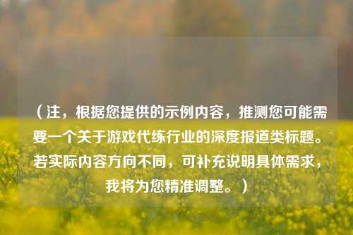 (注:本文仅作现象分析,不鼓励任何形式的代练行为。)